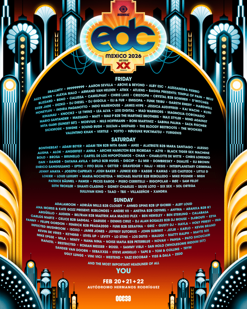 Del 20 al 22 de febrero de 2026, el Autódromo Hermanos Rodríguez en Ciudad de México volverá a encenderse “Under the Electric Sky” con una nueva edición de EDC México, tres días de música electrónica, escenarios monumentales, arte inmersivo y miles de ravers reunidos para celebrar la vida y la música.